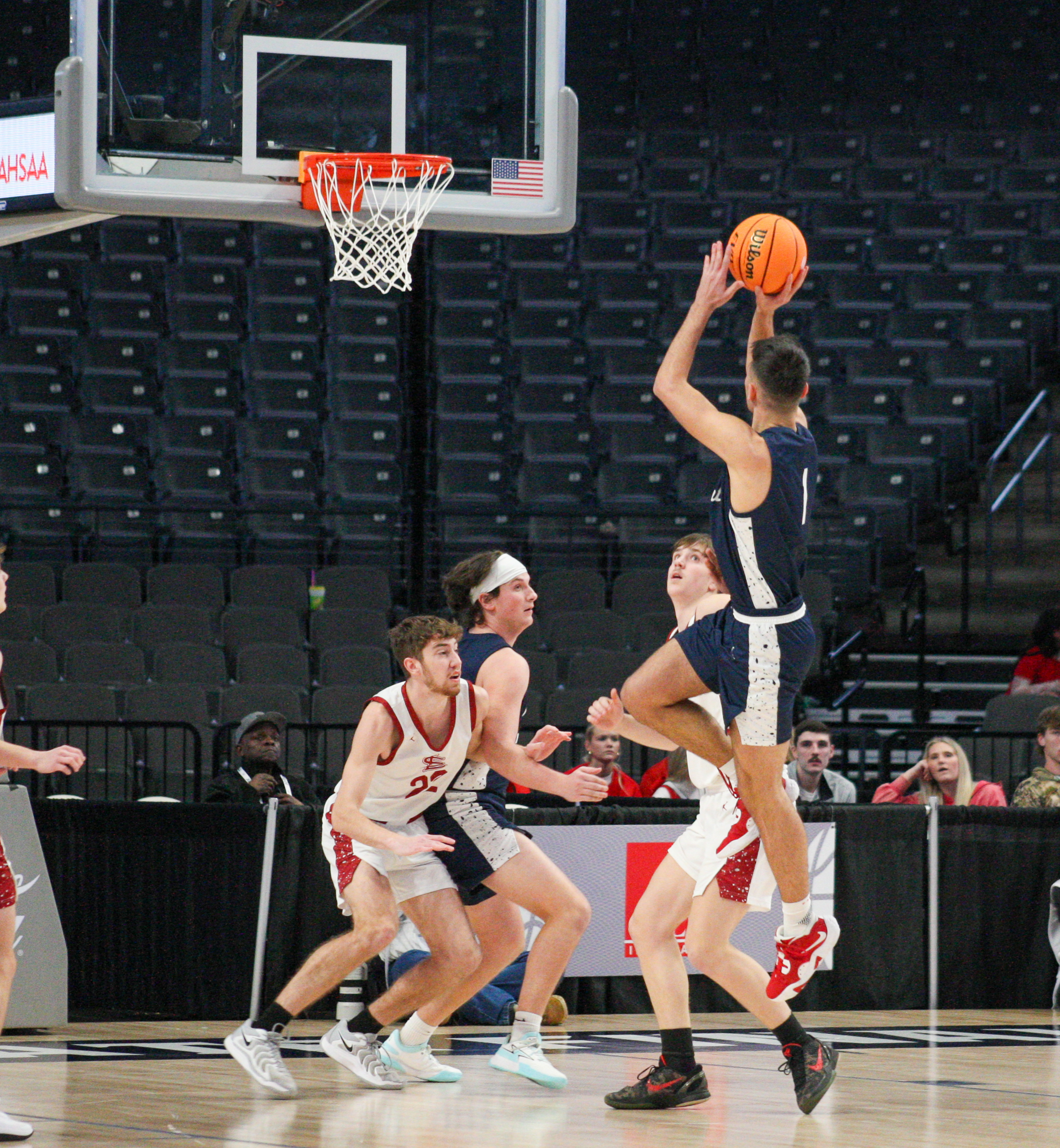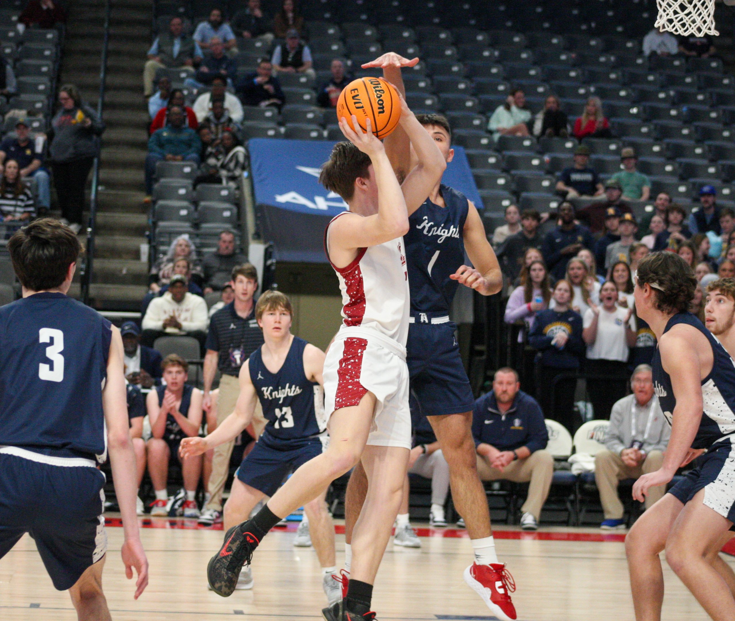 BIRMINGHAM, AL – Tuscaloosa Academy reclaimed control in the final quarter Monday night, outscoring Section 18-0 in the closing minutes to secure a 72-56 win during the 105th AHSAA Basketball Championships at the BJCC’s Legacy Arena.