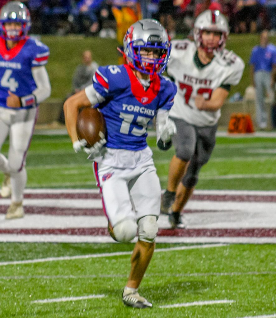 From the opening whistle, the Torches’ offense established its authority. The game began with a spectacular 60-yard touchdown pass from quarterback Landn Irvin to Tucker Andrews on the very first play from scrimmage. Irvin followed up by running in the two-point conversion himself, putting Tabernacle ahead 8-0 just 20 seconds into the contest.