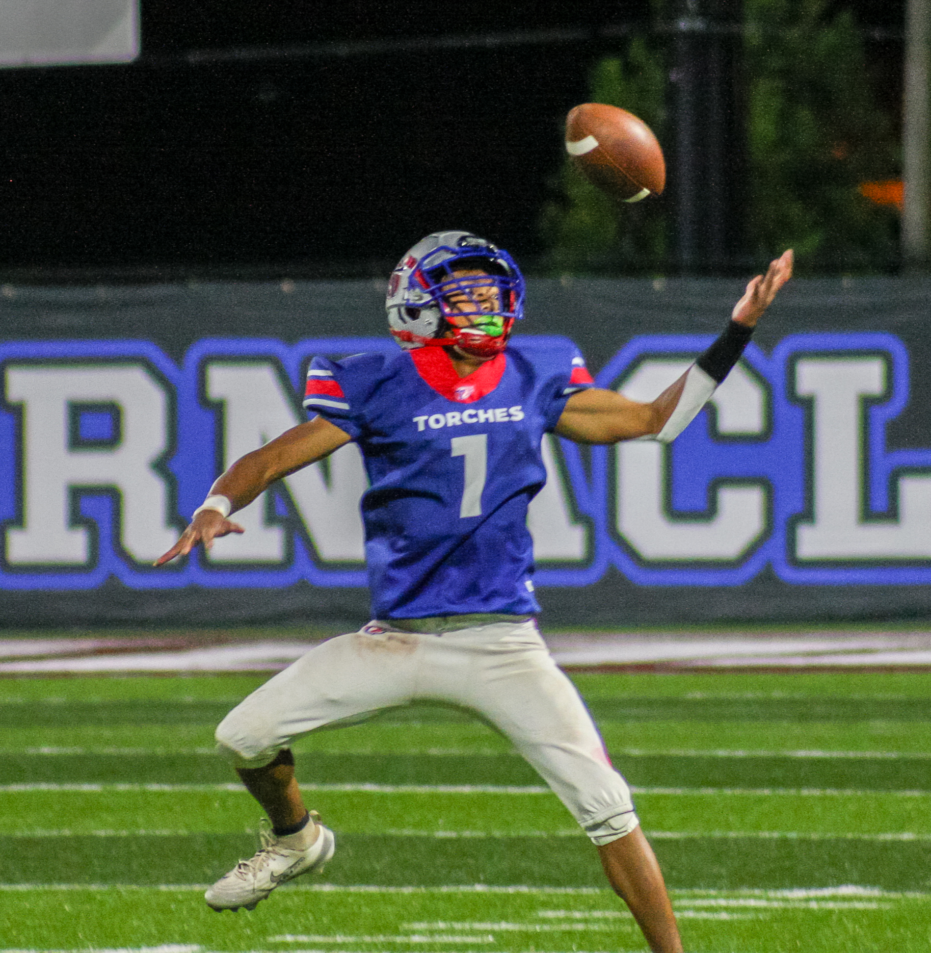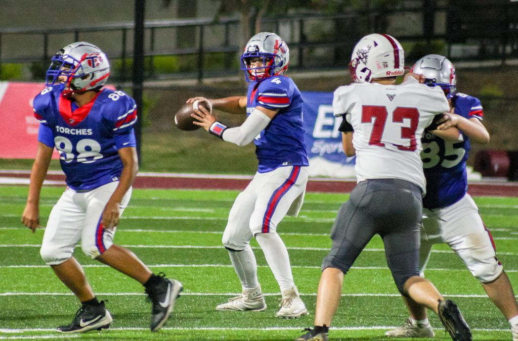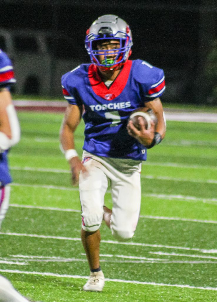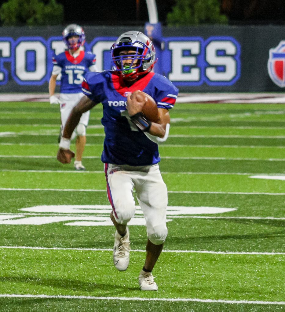 With a running clock implemented for the second half, the game progressed quickly. The Torches recovered an onside kick to start the third quarter. Long runs by Odom and Irvin, along with a significant reception by Andrews, set up another rushing touchdown for Irvin, the junior signal caller powered through an Eagle defender to cross the goal line. Irvin added the two-point conversion on the ground, making the score 54-12.