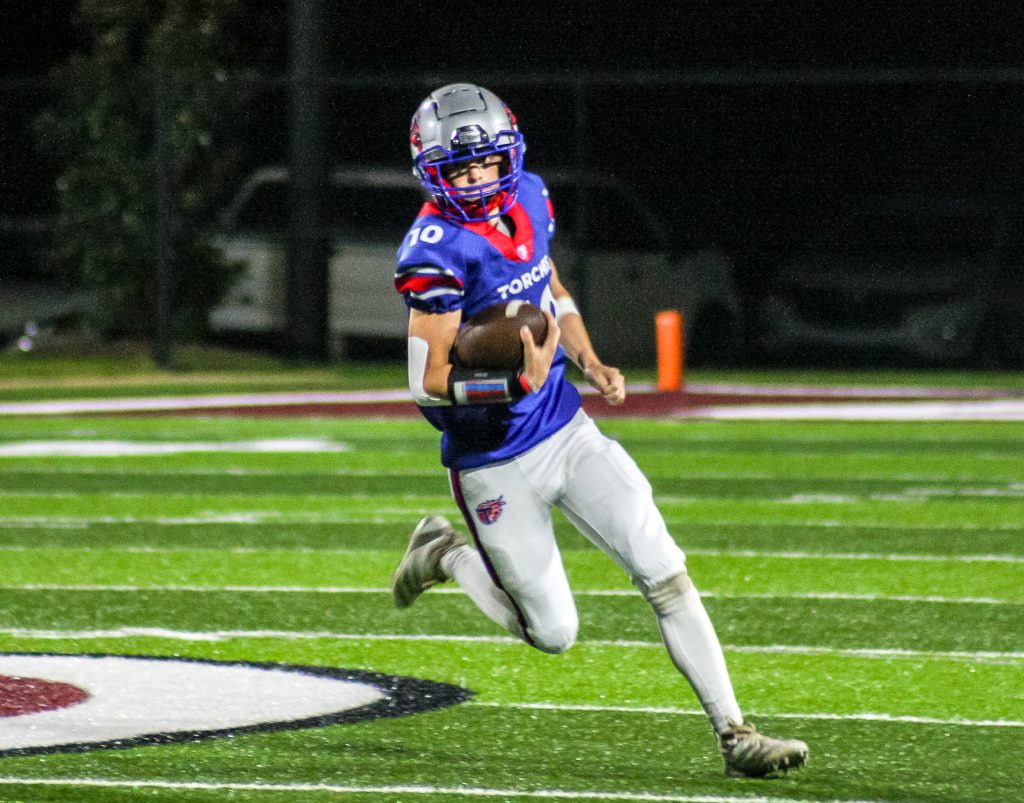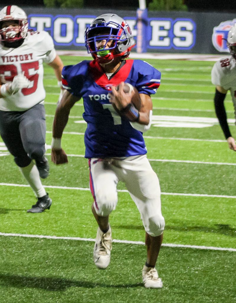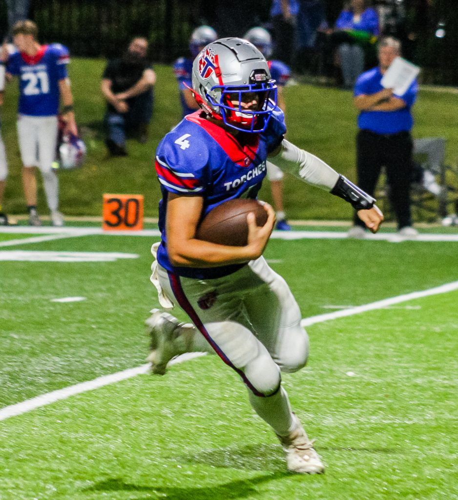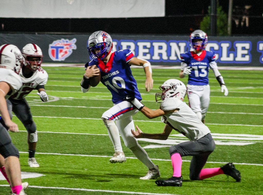 The Torches’ defense continued to stand tall. A sack by Austin Batson forced a fourth down, and a failed fake punt by the Eagles gave Tabernacle excellent field position at midfield. Sharp once again displayed his electric playmaking ability, breaking free for a 50-yard rushing touchdown to give the Torches a 30-0 advantage.