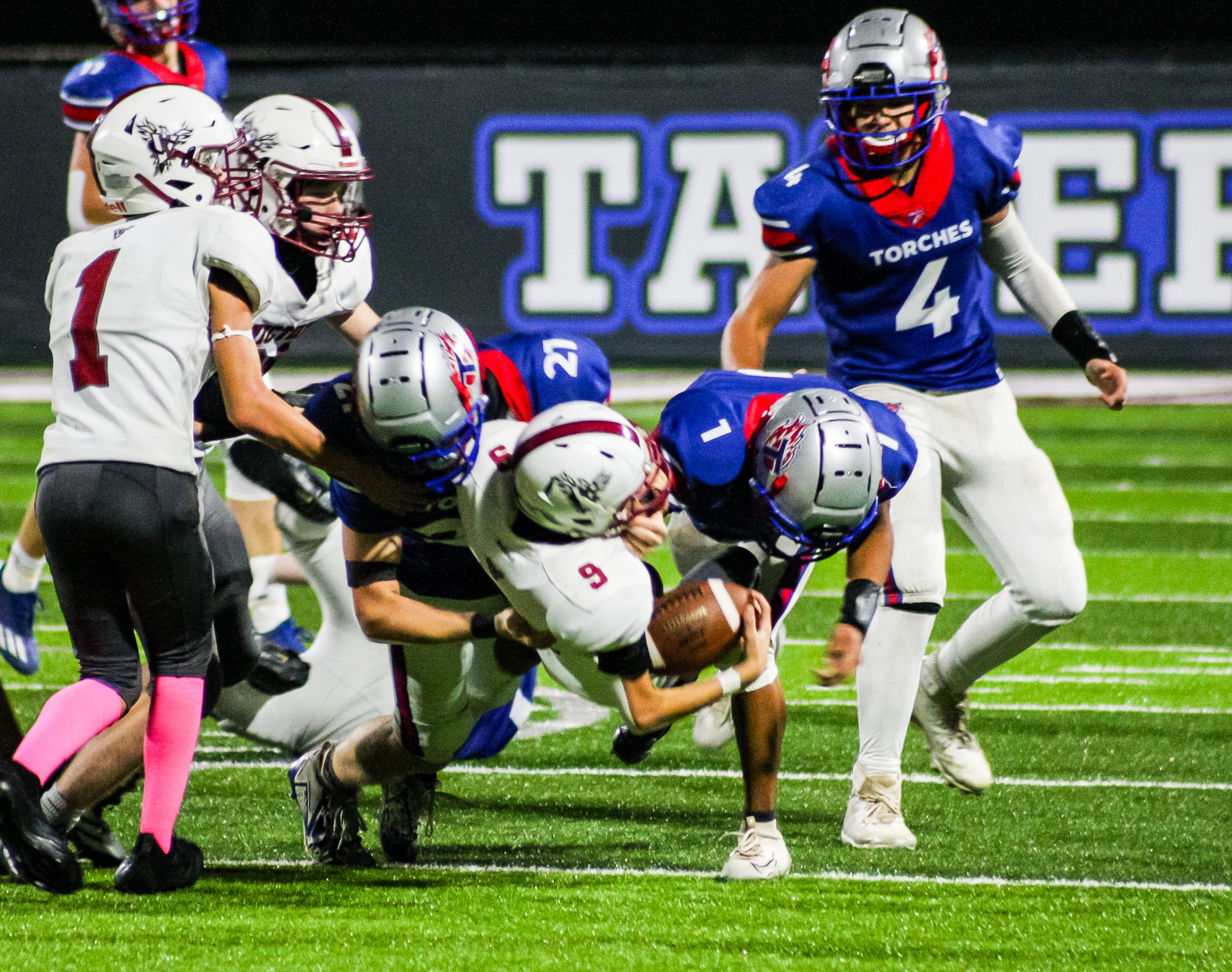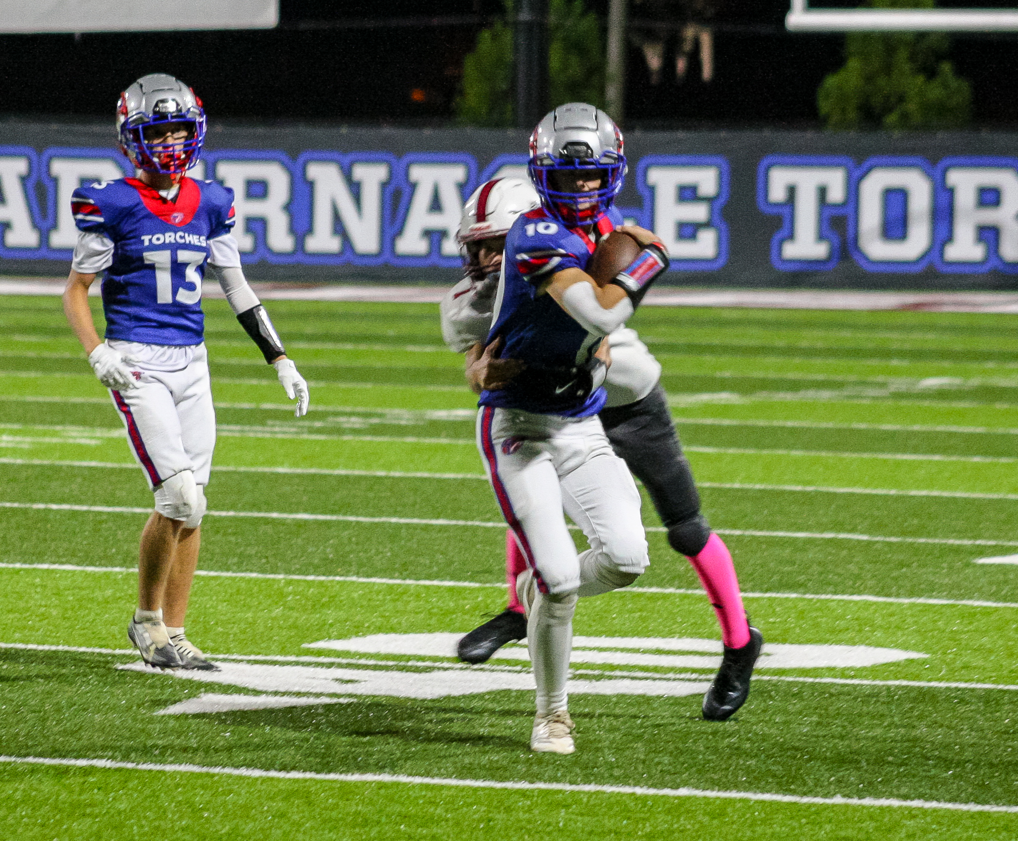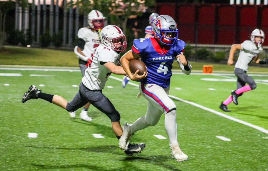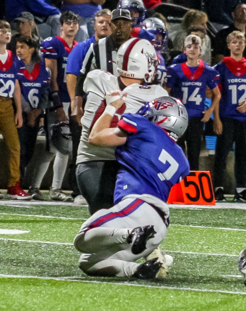 The Torches’ defense continued to stand tall. A sack by Austin Batson forced a fourth down, and a failed fake punt by the Eagles gave Tabernacle excellent field position at midfield. Sharp once again displayed his electric playmaking ability, breaking free for a 50-yard rushing touchdown to give the Torches a 30-0 advantage.