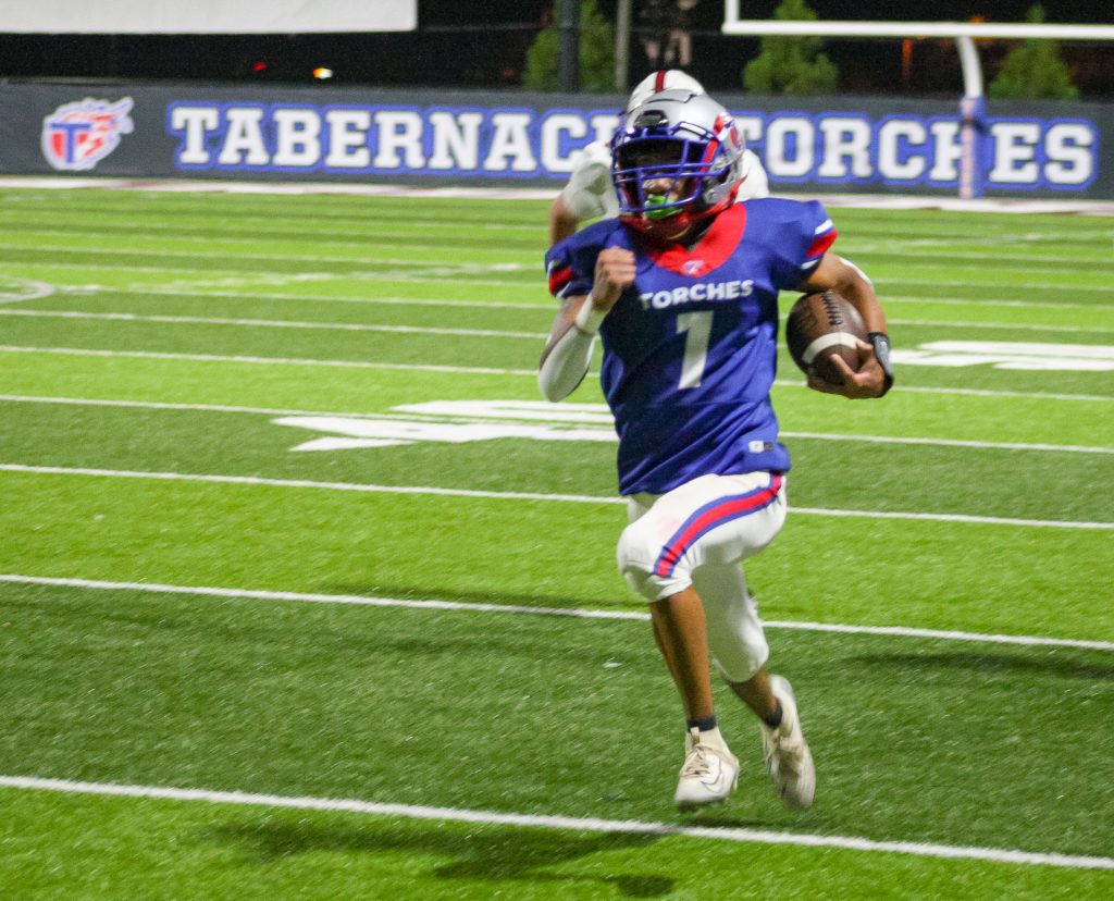Following a quick defensive stop, the Torches’ offense went back to work. Irvin extended the lead with a rushing touchdown later in the first quarter. A successful two-point conversion pass from Irvin to Andrews pushed the score to 16-0. The Tabernacle defense proved relentless, forcing a three-and-out highlighted by back-to-back sacks, quickly returning possession to their high-powered offense.
